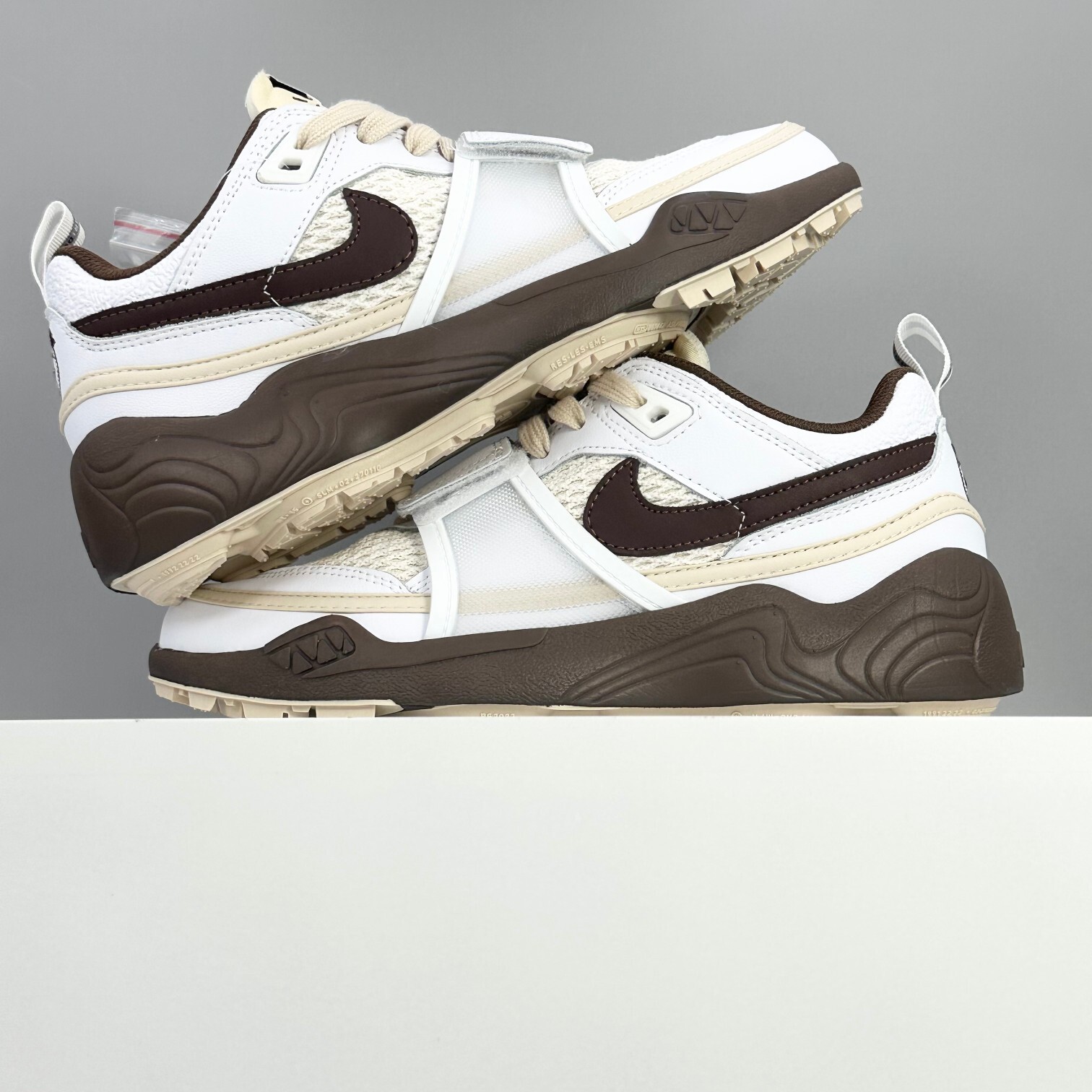 Nike Zoom Field Jaxx Travis Scott White Brown – A bold collaboration between Travis Scott and Nike featuring an off-white mesh upper with brown accents, signature Cactus Jack branding, and Zoom Air cushioning for comfort and standout streetwear style.